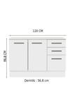 Mutfak Dolabı Alt:Genişlik: 120 cm Derinlik:56,8 cmYükseklik:86.8 cm Tezgah:Genişlik: 121 cm Derinlik:58 cm Paket İçeriği: 1 Adet Mutfak Alt Modül, Kurulum Şablonu ve Bağlantı Aksesuarları