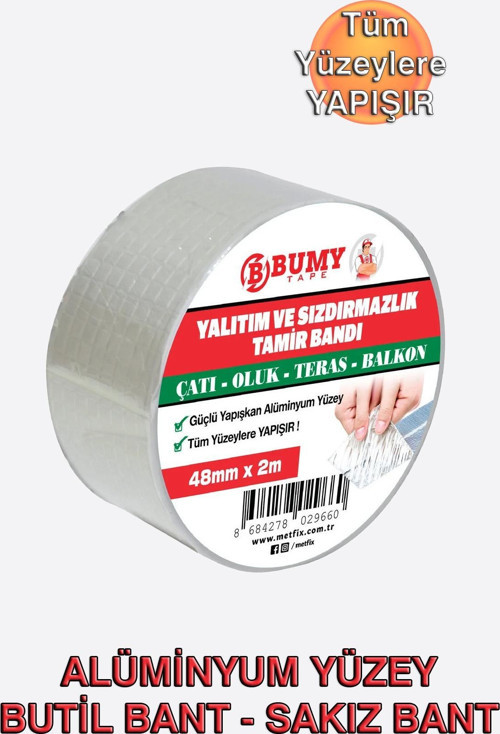 - Butil bant yapısı, yüksek yapışma gücü ve esnekliği ile zorlu koşullarda bile dayanıklılık gösterir.