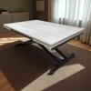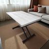 Sehpam Akıllı Oval Ortadan Açılır Akıllı Masa Üst Mdf Beyaz Mermer Alt Ayak Siyah Renk