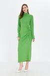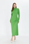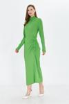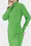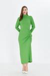 İhraç Yandan Büzgülü Yarım Balıkçı Yaka Standart Beden Fitilli Görünümlü Fit Kesim Uzun Elbise