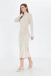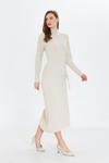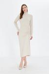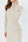 İhraç Yandan Büzgülü Yarım Balıkçı Yaka Standart Beden Fitilli Görünümlü Fit Kesim Uzun Elbise
