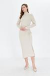 Ersefa Moda Regular Casual Günlük Selanik Örme Dik Yaka Uzun Kol A-Line Midi Boy Elbise