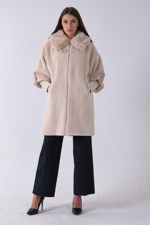 Yandan Cepli Broş Detaylı Yaka Kürklü Peluş Kaban