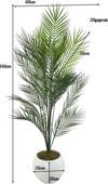 Tropik doğanın ihtişamını evinize taşıyan yapay palmiye ağacı, 130 cm boyu ve 60 cm genişliği ile yaşam alanlarına görkemli bir hava katar. 20 adet geniş yaprağı ile yoğun ve doğal bir görünüm sunan bu dekoratif palmiye, modern beyaz küre saksısıyla uyumlu bir şıklık sergiler. Gerçekçi dokusu sayesinde canlı palmiyeyi aratmaz, bakım ve sulama gerektirmeden uzun süre dekoratif güzelliğini korur.