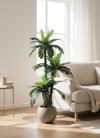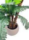 120 cm yüksekliğindeki bu özel tasarım, üç katlı gövde yapısı ve 45 adet dolgun yeşil yaprağıyla doğal, hacimli ve dengeli bir görünüm sunar. Gerçek sıkas (cycas) palmiyesinden ilham alınarak üretilmiş yaprak formu, damar detayları ve renk geçişleri sayesinde hem yakından hem uzaktan son derece gerçekçidir.