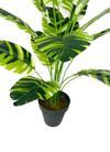 Yapay Çiçek – Çizgili Muz Yapraklı Alaca Starliçe Salon Çiçeği | 18 Dallı Yapay Bitki | 80x50 cm