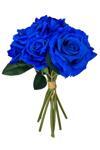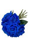Yapay Çiçek Mavi Gül 10lu Demet Gelin Çiçeği Buketi Masa Üstü Vazo Çiçeği 25cm