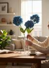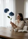 Kumaş dokulu yapay ortanca çiçeği; doğallığı, zarif duruşu ve uzun ömürlü yapısıyla, yaşam alanlarınıza bahar tazeliği getirir. Gerçek çiçek bakımıyla uğraşmadan, her zaman canlı ve estetik bir atmosfer oluşturmak isteyenler için ideal bir dekoratif seçimdir.