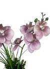 Zarif görünümü ve şık tasarımıyla dikkat çeken yapay ıslak orkide, gold renk metal saksısı ile bulunduğu ortama modern ve lüks bir hava katar. 50 cm uzunluğundaki bu dekoratif orkide, canlı çiçek dokusuna en yakın şekilde tasarlanmış olup gerçekçi yaprak ve çiçek detayları sayesinde adeta doğadan koparılmış gibi görünür.
