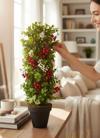 Evinize veya iş yerinize doğallığın şıklığını kazandırmak istiyorsanız, kokinalı yeşil şimşir yapay ağacı mükemmel bir tercih! 70 cm yüksekliği ve 30 cm genişliğiyle dikkat çeken bu zarif model, siyah modern saksısı içinde hazır olarak sunulur. Kokina kırmızı meyvelerinin canlılığı ile yeşil şimşir yapraklarının dolgun görünümü birleşerek estetik, canlı ve dört mevsim kullanılabilir bir dekoratif etki yaratır.