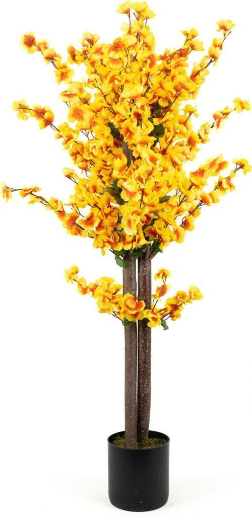 Yapay Çiçekçiniz Siyah Saksıda Turuncu Sarı Renkli 120 Cm Japon Bahardalı Ağacı