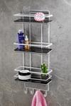 Sas Haus Yapışkanlı Ömür Boyu Paslanmaz Kristal Ayarlanabilir Raf Banyo Düzenleyici Şampuanlık Beyaz - Siyah