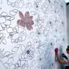 2. Kullanılmak istenen boyalar hazırlanarak rulo, fırça veya süngerle üstünden geçilir. Boyanın stencil’ın altına geçmemesi için yavaş boyanması, sünger kullanılıyorsa tampon hareketlerle nazikçe kullanılması önemlidir.