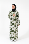Bilenler Yaprak Desenli Kruvaze Namaz Elbisesi – %100 Viskon, Yandan Bağlamalı 36-46 Beden