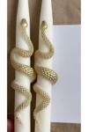 - Zarif yılan kabartması ile süslenmiş, göz alıcı bir tasarıma sahip şamdan mumu.