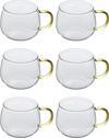 6'lı Borosilikat Cam Kupa Kulplu Bardak, ev ve ofis ortamlarında sıcak veya soğuk içecekleriniz için idealdir.