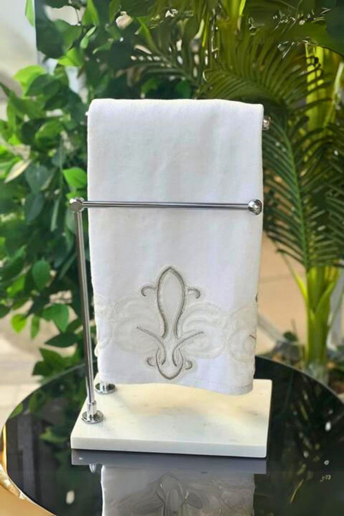 Yaren Style'un şık tasarımı ve kalitesiyle öne çıkan Gerçek Mermer Ayaklı Gümüş Metal 2 Katlı Havluluk & Kağıt Havluluk Standı, doğal mermerin zarif dokusunu modern bir şekilde yansıtıyor.
