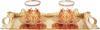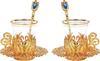 Yaren Style İkili Osmanlı Lale Dekorlu Gold Kuplu Çay Bardağı, Çay Kaşığı & Tepsili