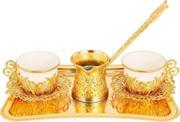 Yaren Style Türk Kahvesi 2'Li Gold Sunum Seti – Tepsili Ve Cezveli Şık Kahve Takımı