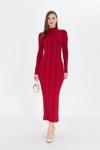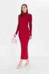 İhraç Yarım Balıkçı Yaka Standart Beden Fitilli Görünümlü Fit Kesim Uzun Elbise