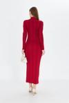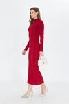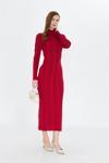 Dip Moda kadın kırmızı kemerli yakası büzgülü uzun şifon elbise RSSN27 - Image 1