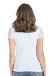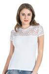Bisiklet yaka, yaka kısımları tamamen dantelli yeni sezon yarım kol kadın tişört modelidir.