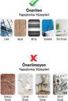 Ürün uygulama da yapıştırmada verilen 2 parça arası boşluğuna göre daha fazla/az alan kaplayabilir.
