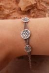 - Bilekliğin ortalama ebadı: uçtan uca ortalama 17 cm + 3,5 cm uzatma ek halkaları / orta göbek plakanın çapı : 1,2 cm