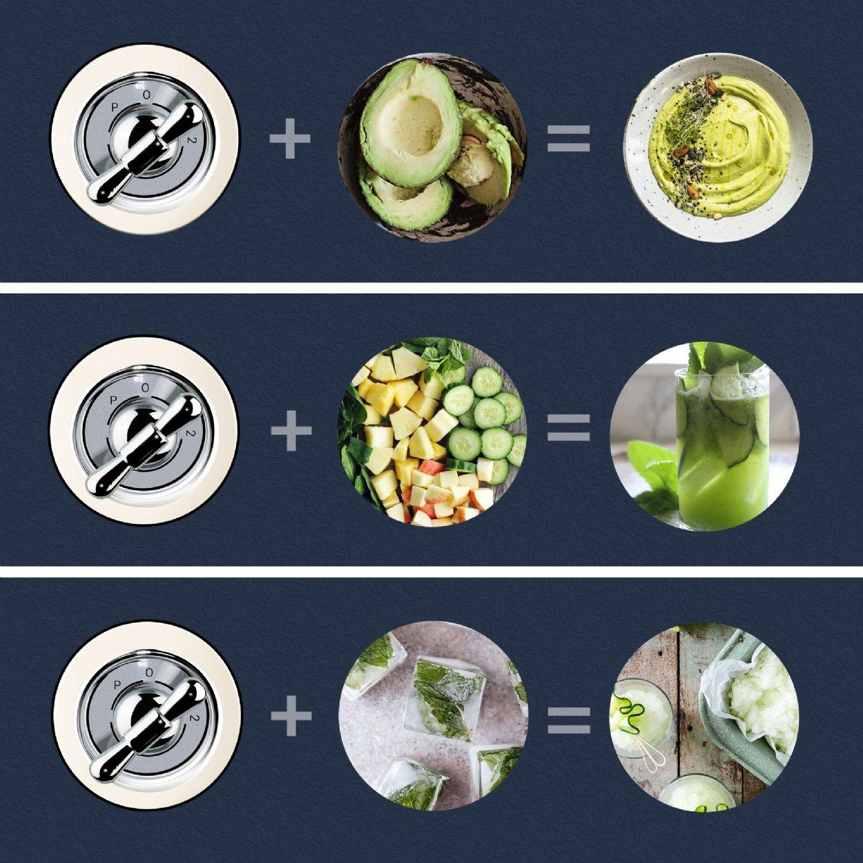 6 Noktalı Tasarım: Sebzeleri ve meyveleri kolayca ve hızlı bir şekilde ezer, lezzetli içecekler yapmanızı sağlar.