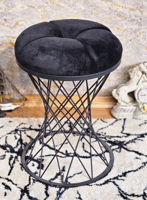 Yuvarlak Siyah Boyalı Füme Puf Oturak - Bench - Ayak Ucu Oturak - Tabure - Makyaj Oturak SİYAH Renk Tek Ebat Beden