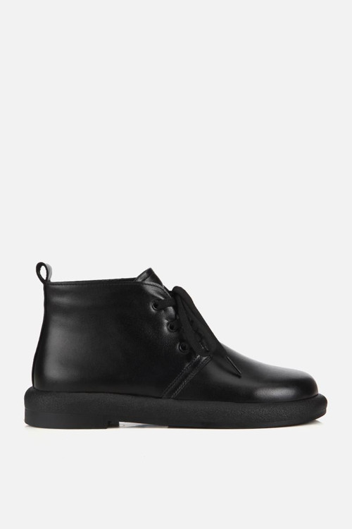 Kadın Deri Siyah Bağcıklı Düz Bot