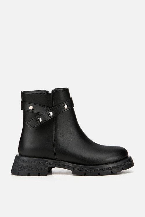 Kadın Siyah Tokalı Kalın Tabanlı Düz Bot