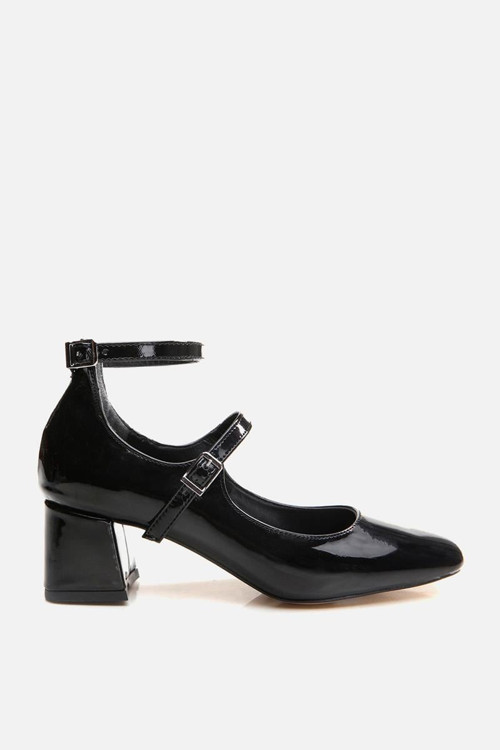 Mary Jane Siyah Kadın Kalın Topuklu Ayakkabı