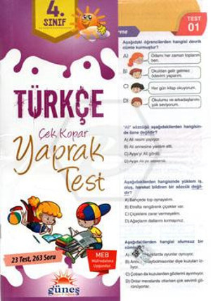 Güneş Yayınları 4. Sınıf Türkçe Yaprak Test - Güneş Yayınları
