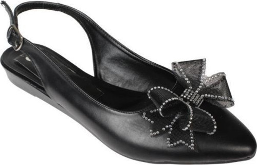 YAZKIŞ Kadın Siyah Beyaz Cilt Üzeri Tül Fiyonklu Önü kapalı Arkası Açık Babet