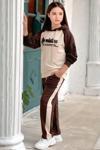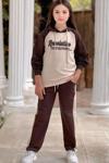 Bu Yazı Desenli Kapşonlu Kahverengi Kız Çocuk Eşofman Takımı Yumuşak Yapısı ve Modern Tasarımıyla Günlük Kullanım İçin Mükemmel Bir Seçimdir.