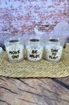 Mum ve Parafin Yazılı Cam Bardak Mum – Move On, Be Wild, Time To Play – 42 Saat Yanma Süreli Dekoratif Hediyelik & Özel Gün İçin Mum