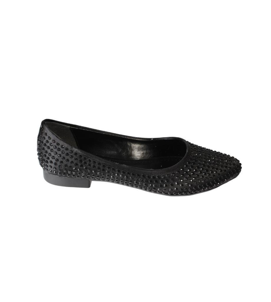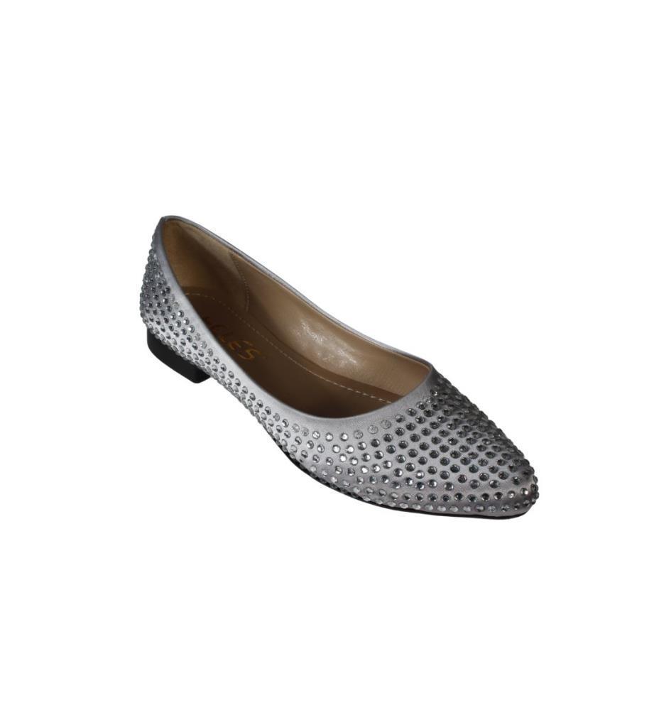 Yaz Kış Ayakkabı YAZKIŞ Kadın Gümüş Siyah Düz Taşlı Babet