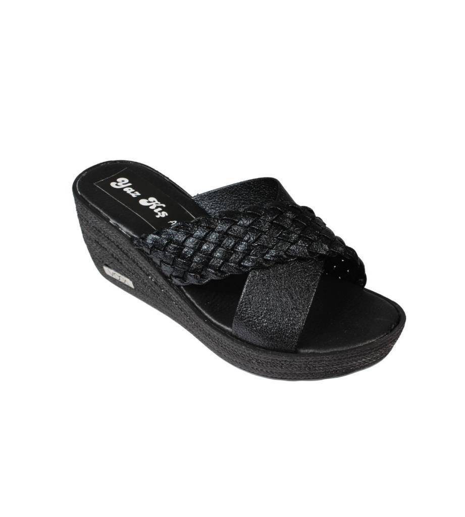- Şık tasarımıyla dikkat çeken siyah dolgu taban terlik, yaz aylarında şıklığınızı tamamlar.