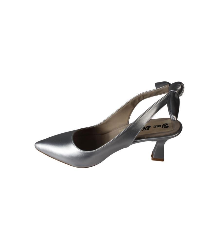 Yaz Kış Ayakkabı YAZKIŞ Kadın Siyah Gümüş Cilt Arkası Açık Fiyonlu Önü Kapalı Sivri Burun 6cm Kadeh Topuk Ayakkabı