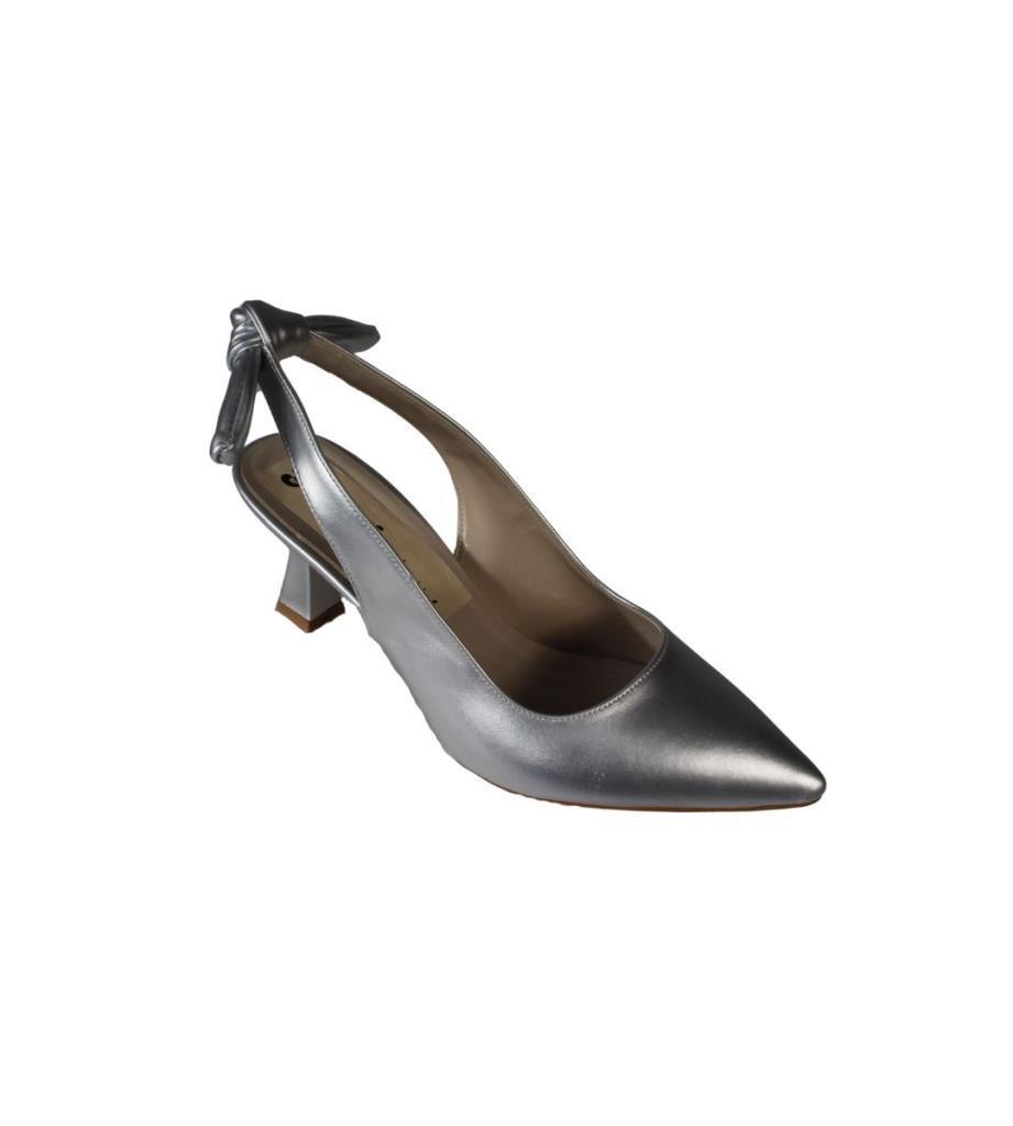 Yaz Kış Ayakkabı YAZKIŞ Kadın Siyah Gümüş Cilt Arkası Açık Fiyonlu Önü Kapalı Sivri Burun 6cm Kadeh Topuk Ayakkabı