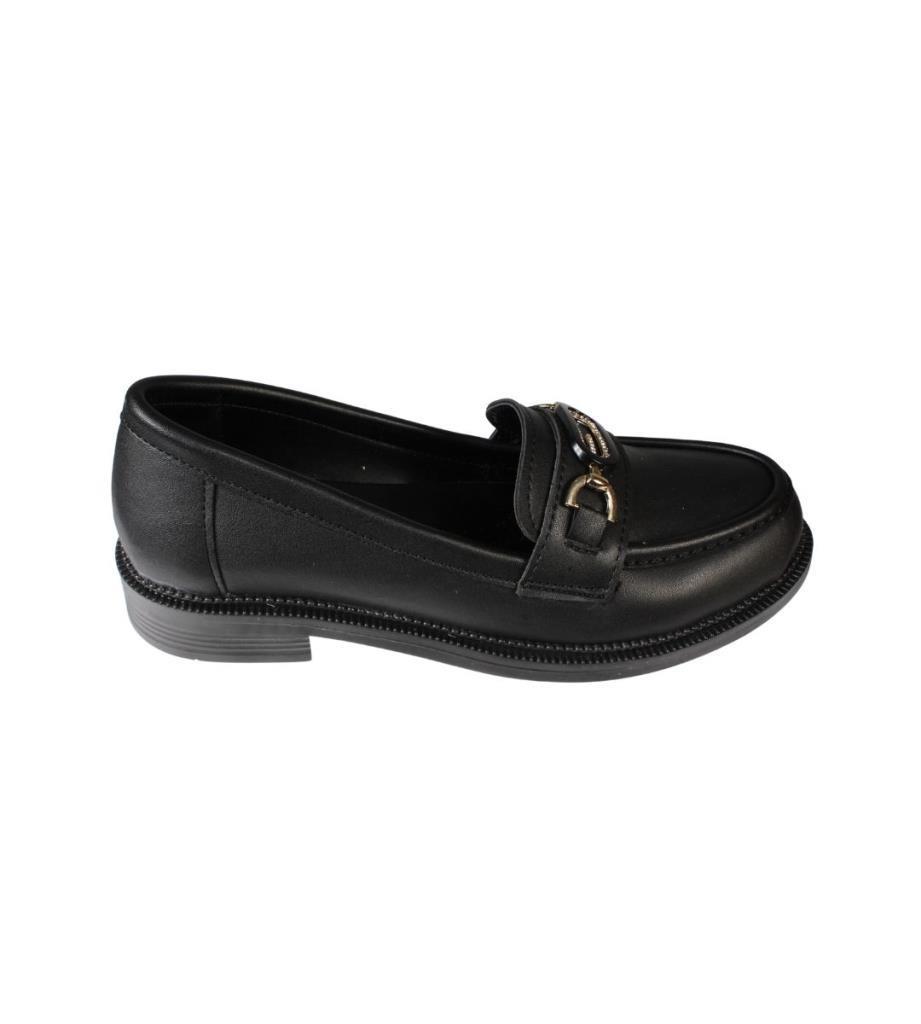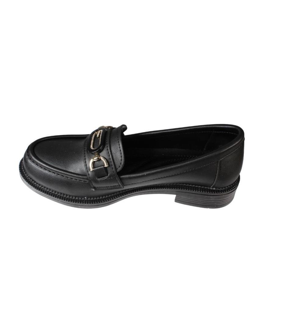 YAZKIŞ Kadın Siyah Ten Cilt Üzeri Oval Taşlı Oxford Babet Ayakkabı