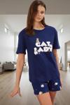 Ersefa Yazlık %100 Pamuklu Rahat Pijama Takımı Kedili Desenli Şortlu Kaliteli İşçilik Zarifane Tasarım