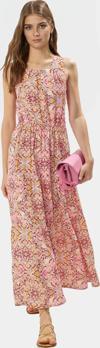 Viskoz kumaşın yumuşak dokusu, gün boyu rahatlık hissi verir. A-line kesim vücut hatlarınızı zarif bir şekilde sarar. Halter yaka, boyun bölgenizi ön plana çıkarır. Maxi boyu, her ortama uygun bir şıklık sunar. Bu elbiseyi şık sandaletler ve minimal aksesuarlarla tamamlayarak mükemmel bir görünüm elde edebilirsiniz. Günlük kullanım için ideal olan bu elbise ile hem şık hem de rahat olabilirsiniz.