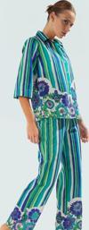 Yumuşak dokusu, nefes alabilir yapısı ve mükemmel kesim detayları ile dikkat çeken bu plaj takımı, yaz günlerinin vazgeçilmeziniz olacak. Çizgili desen, her vücut tipine uyum sağlayan rahat bir kalıba sahiptir. Standart kol tipi ve gömlek yakası ile şık bir görünüm sunarken, çiçekli detaylar takımın benzersiz tarzını ortaya koyuyor. Ürünün astarı yoktur ve kolayca bakım yapılabilir. Hem şık görünüm hem de pratik kullanım için mükemmel bir seçimdir.