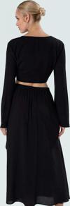 Yüksek kalite viskoz kumaş, gün boyu nefes alabilirlik ve konfor sağlar. Oversize kalıp, vücuda mükemmel otururken hareket özgürlüğü sunar. Bluzun bağlama detayı, takımın şık görünümünü tamamlarken, eteğin derin yırtmaçlı tasarımı da feminen bir hava katıyor. Düz desen, her ortama uyum sağlar. Standart kol boyu ve uzun boyu ile takım her mevsim giyilmeye uygundur. Ürünümüzün rahatlığı ve şıklığıyla yazın keyfini çıkarın. Makinede yıkanabilir özelliğiyle pratik kullanım sunar.