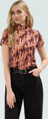 Yumuşak polyester kumaş, gün boyu konfor sunarken, dayanıklı yapısıyla uzun süreli kullanım sağlar. Çok renkli soyut deseni, her tarza uyum sağlayacak şekilde tasarlandı. Bluzun bürümcük dokusu ise ona benzersiz bir görünüm kazandırıyor. Bu bluz ile jean pantolonlarınızdan eteklerinize, şortlarınıza kadar her şeyle mükemmel bir uyum yakalayabilirsiniz.