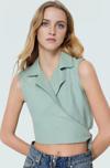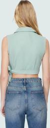 62% Polyester, 27% Pamuk, 11% Viskoz; Düz Desen; Ceket Yaka; Kalın Askılı; Fitted Kalıp; Dokuma Kumaş; Bej Renk; Cepsiz; Astarsız; Crop Boy; Casual/Günlük Koleksiyon; Kolsuz; Şık/Gece Ortam; Basic Siluet; Keten Görünümlü Dokuma; Kemersiz; T10 Yıkama Talimatı; Yaz Sezonu; Türkiye Menşei