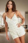 Yaz aylarının vazgeçilmez rahatlığı için tasarlanan bu 2'li pijama takımı, %100 pamuk kumaştan üretilmiştir. Ekru rengi ve üzerindeki zarif çiçek desenleriyle, şıklığı ve rahatlığı bir araya getiriyor. İnce askılı üst ve fitilli şorttan oluşan takım, gün boyu süren bir konfor sunar. Nefes alabilen yapısıyla yaz sıcaklarında serin kalmanıza yardımcı olurken, yumuşak dokusuyla cildinize nazikçe dokunur.