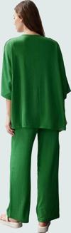 Yaz aylarında hem rahat hem de şık görünmek isteyenler için mükemmel bir seçim. Bu iki parçalı takım, yumuşak ve nefes alabilen örme kumaştan üretilmiştir. Geniş paça ve uzun boy tasarımıyla hareket özgürlüğü sunarken, V yakası ve relaxed kalıbıyla da rahatlığı ön planda tutar. %100 polyester materyal bileşimi sayesinde dayanıklı ve uzun ömürlü bir kullanım vaat eder.